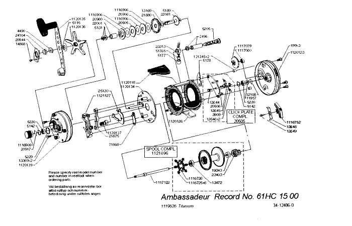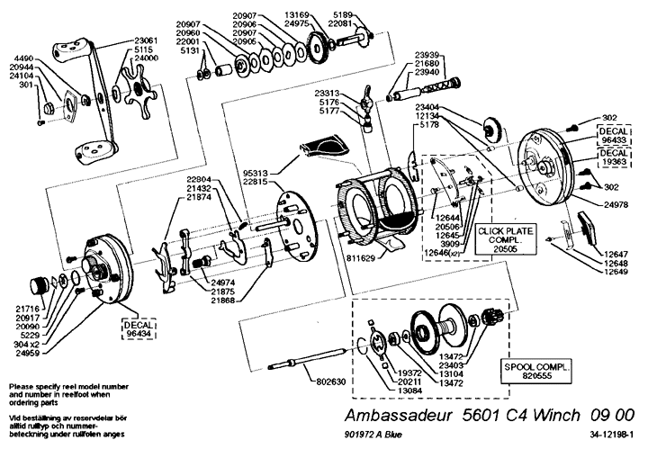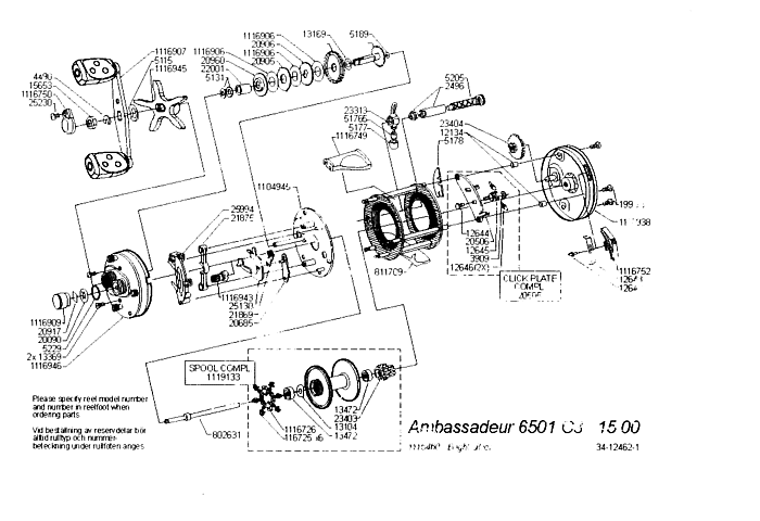 down with the thumb, disengages the spool for casting. Found on reels with a '6'
