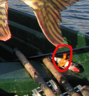 On the next trolling pass Nige got a take that did the usual trick of a few early head sakes then going solid. Where there's one big fish there's usually another. "I don't know what I've got on here" he said, as he pumped it back to the boat. "It could be a big branch." I have an idea we were both really expecting another lump to hove into sight. What actually broke surface was a pike about four pounds!