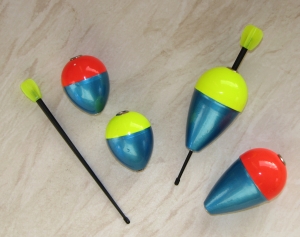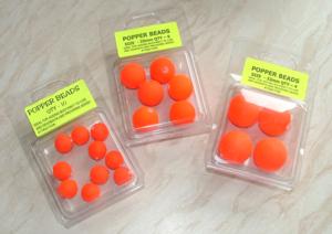plastic, buoyant, fluo red painted beads for popping up live or dead baits. Two